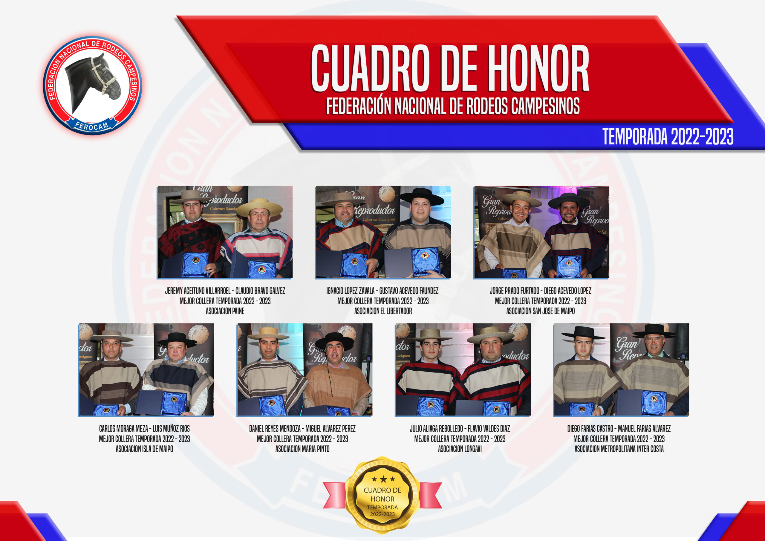 | IGNACIO LOPEZ ZAVALA – GUSTAVO ACEVEDO FAUNDEZ | MEJOR COLLERA TEMPORADA 2022 – 2023 | ASOCIACION EL LIBERTADOR |